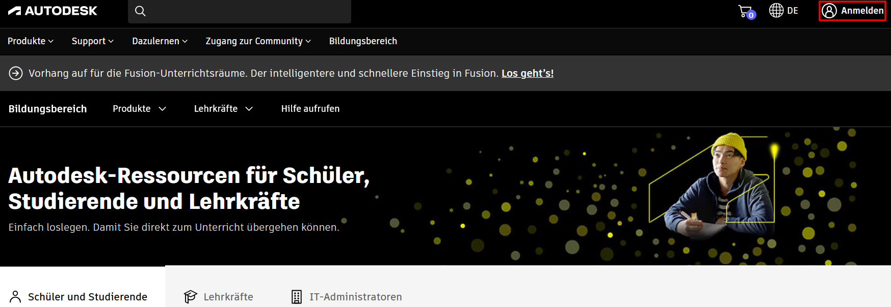 Bevor Sie AutoCAD herunterladen können, müssen Sie sich es auf der Autodesk-Homepage